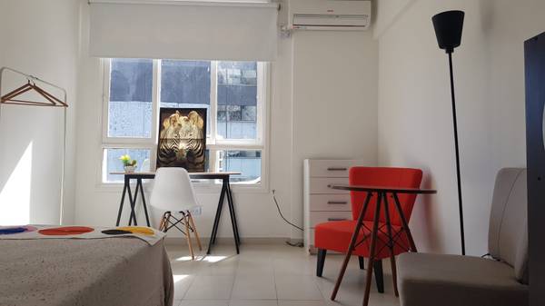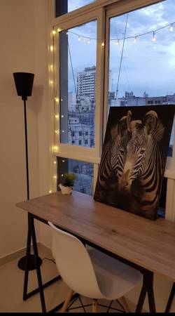 El estudio es una excelente oportunidad, se encuentra amoblado con todo lo necesario. Reciclado a nuevo, muy luminoso, y tiene una excelente vista abierta de la ciudad, piso alto, baño completo, Placard, con un espacio para trabajar y sommier de 2 plazas muy cómodo. Tiene una pequeña cocina con electrodomésticos, equipada. Edificio de 40 años. El estudio es cálido y con bellos detalles.